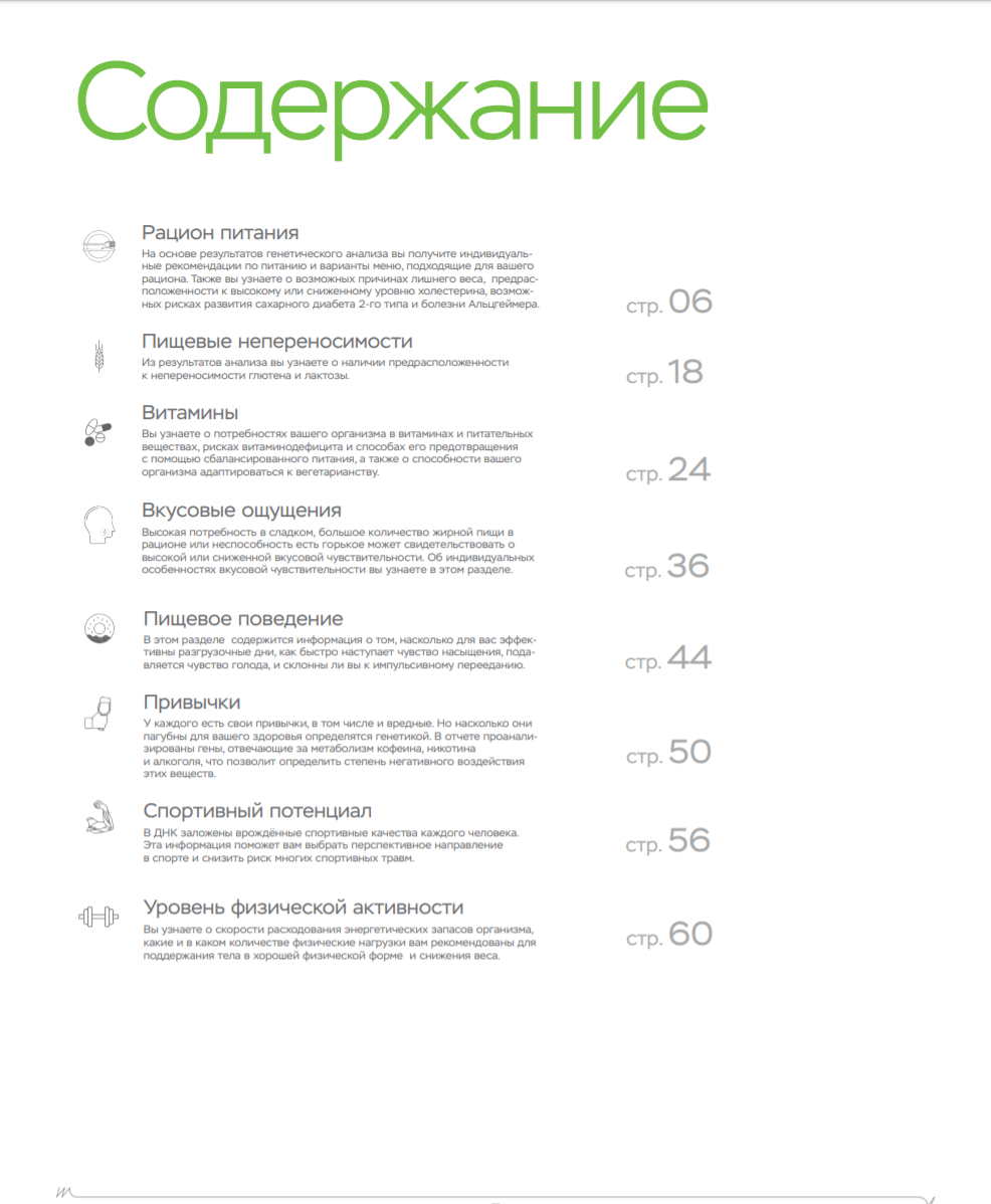 | Отчёт Light (Лайт) | Отчёт Fit (Фигура) | Отчёт Wellness (ЗОЖ) |